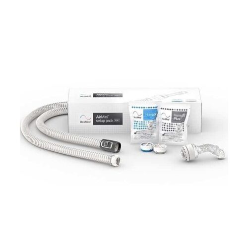 Det här AirMini F20-monteringssetet har alla de delar du behöver för att enkelt ansluta en AirFit F20-helmask till en AirMini CPAP-apparat. Det kan även användas med AirFit F20 for Her- och AirTouch F20-helmasker.