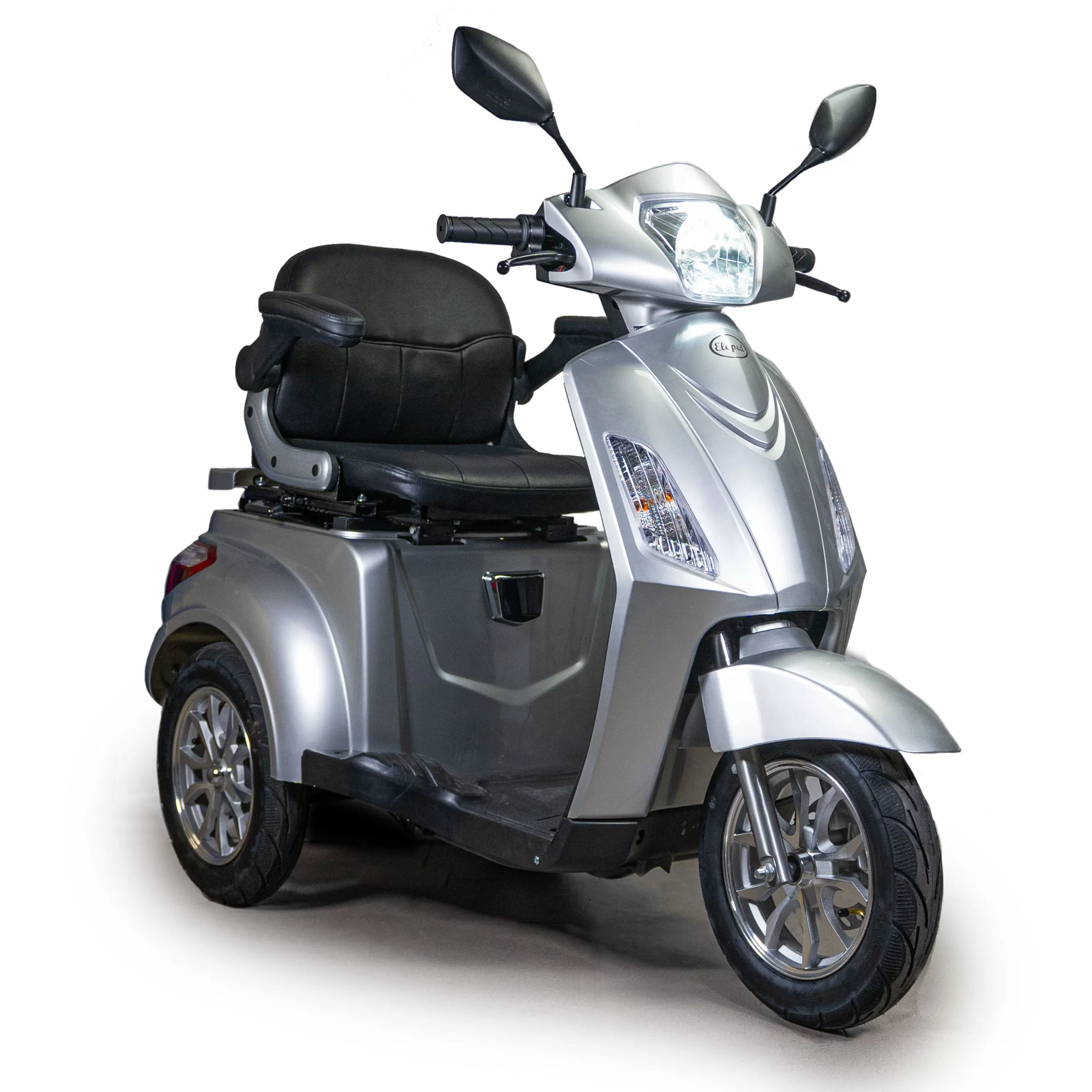 Eloped Scooty promenadscooter är här. Den populära designen har tagits till ett ännu lägre insteg. Med praktiska funktioner som den justerbara, smarta stolen, vilket säkerställer en stilfull och bekväm körupplevelse men som också erbjuder låst förvaring undertill. Scooty är utrustad med framhjuls skivbromsar, stötdämpare, magnetbroms och stora backspeglar, vilket ger en säker och njutbar färd. Den tydliga instrumentpanelen och effektiva belysningen ger dig full kontroll över Scooty när som helst på dygnet. Eloped Scooty är inte bara en glädje att köra, den är också ekonomisk att använda och underhålla.