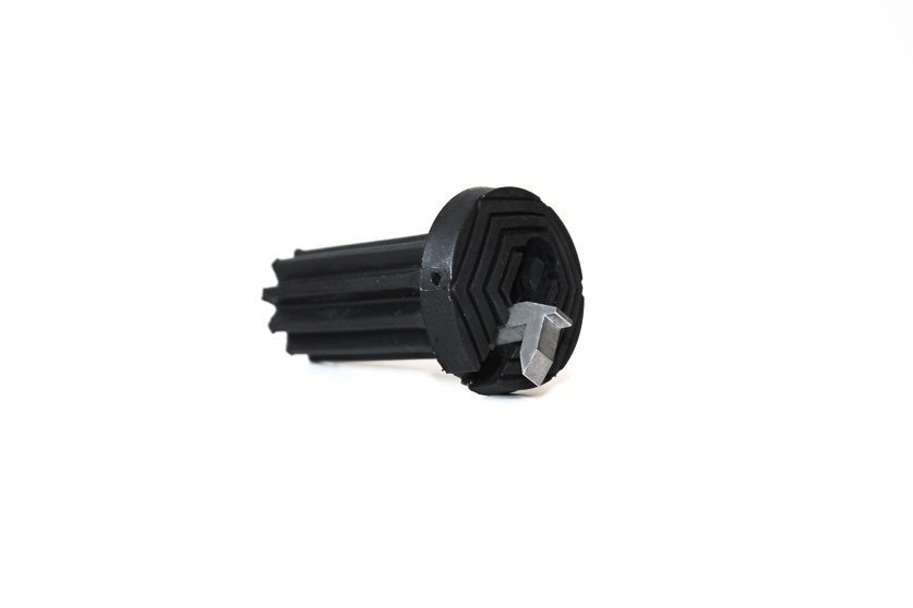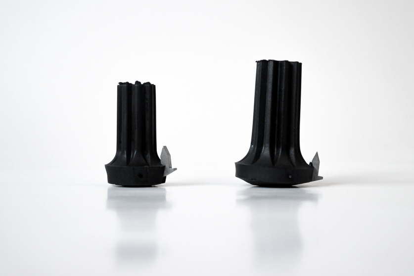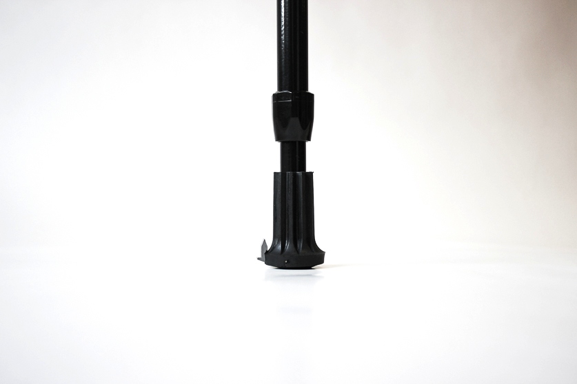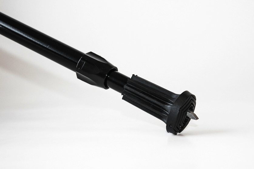 En svart elastisk doppsko med inbyggd ispigg. När ispiggen inte används kan den enkelt vikas in i doppskon.